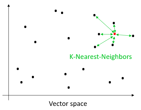 De meest voor de hand liggende manier om de dichtste vectoren te zoeken ten opzichte van een query vector is om de query vector exhaustief te vergelijken met alle vectoren in de databank (k-Nearest-Neighbors of kNN). Op die manier zijn we zeker dat we de k dichtste vectoren terugvinden. We krijgen in dit geval perfecte accuraatheid. De keerzijde is echter dat het een rekenintensieve methode is die niet schaalt.